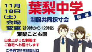 • 葉梨小学校、中学校制服採寸会のお知らせ
