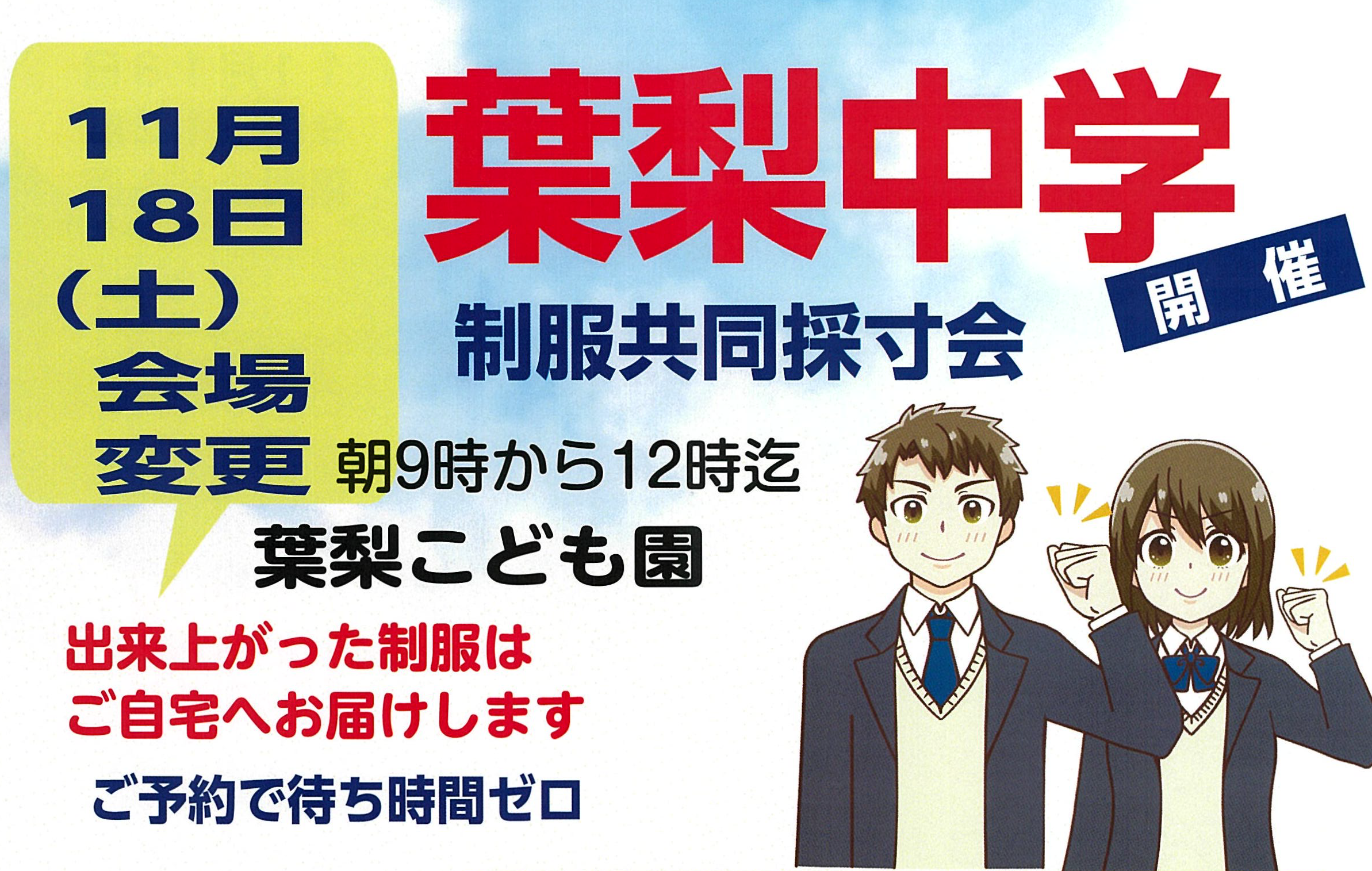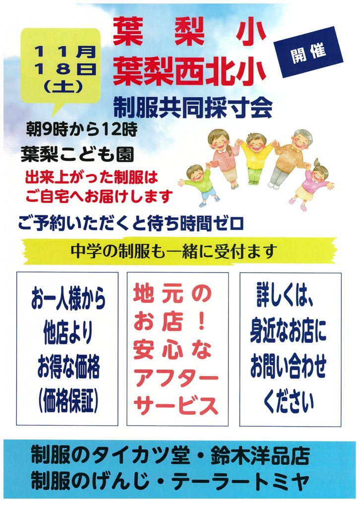 • 葉梨小学校、中学校制服採寸会のお知らせ
